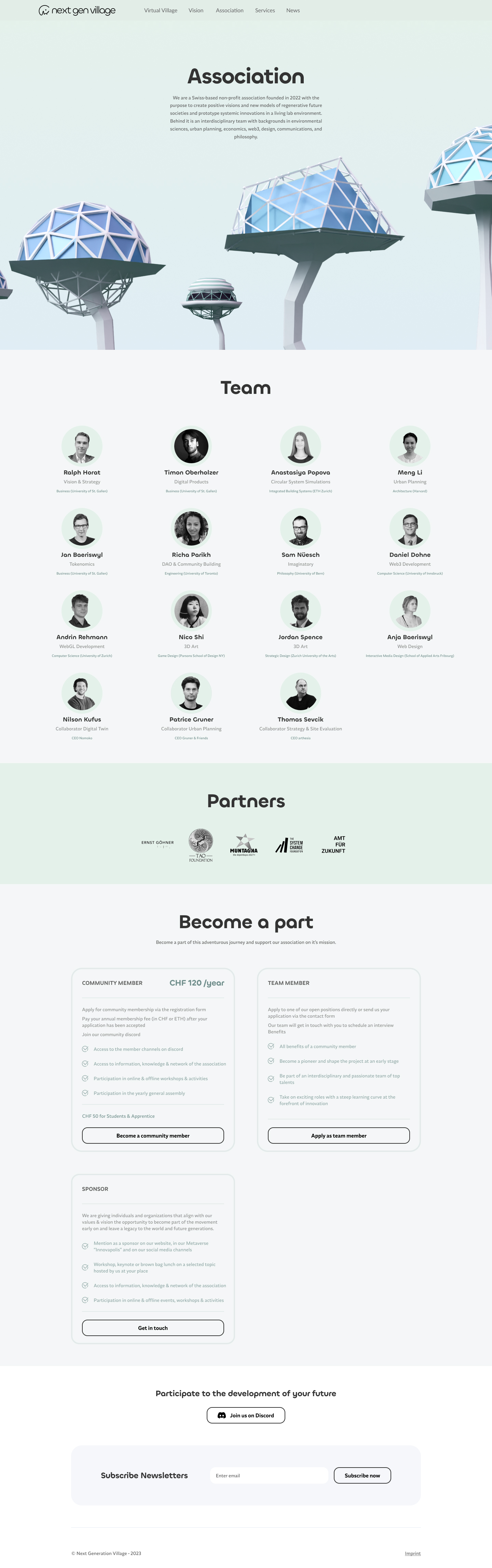Our mission is to bring together some of the brightest minds and creators to build a Village of the Future in Switzerland. A home for pioneers that sparks our collective imagination of what life in a regenerative and thriving society of the future could look like.